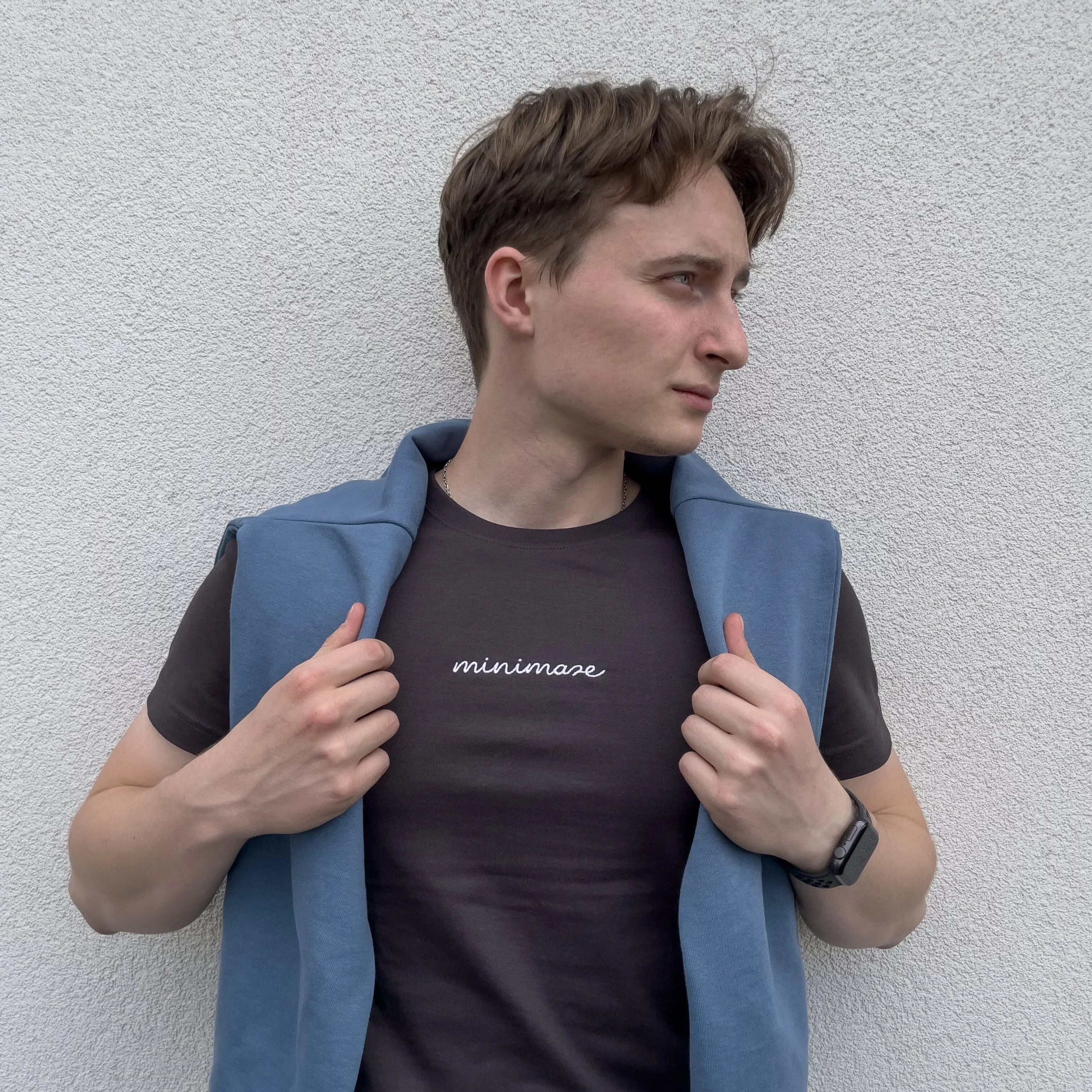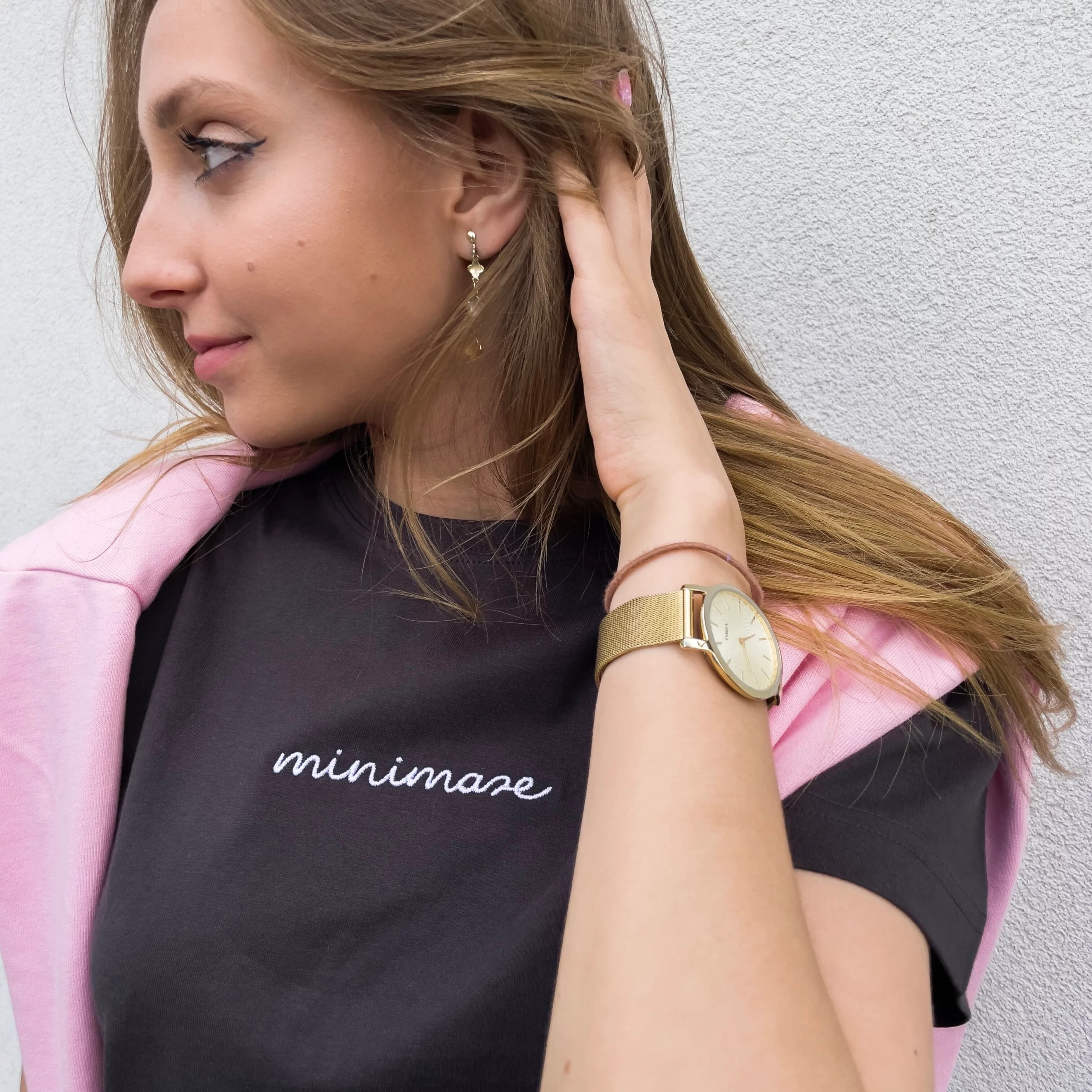 Grafitowy T-shirt z napisem „minimaze”